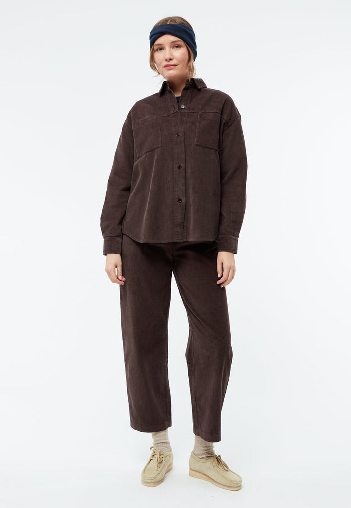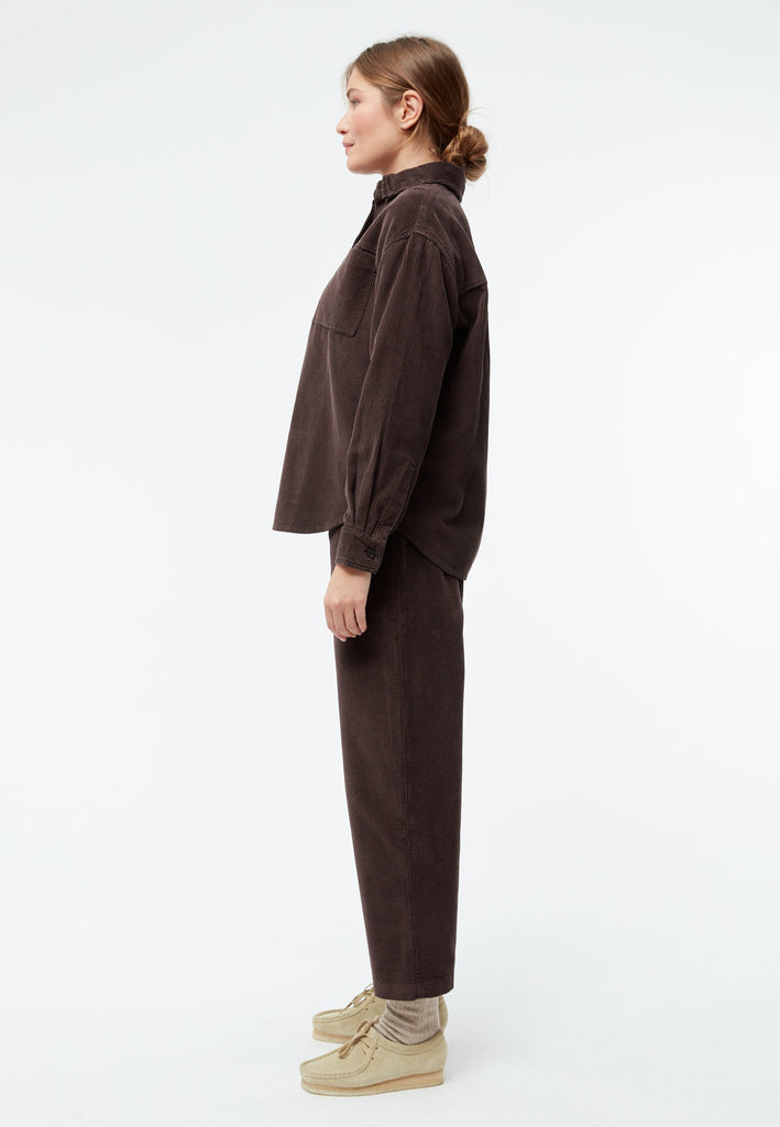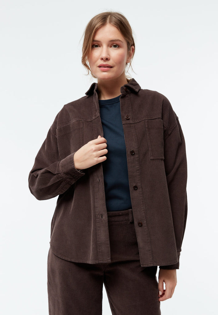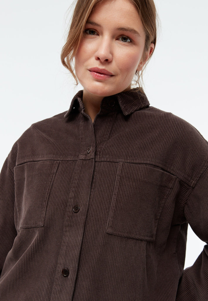 The loose-cut overshirt Oxana made of sturdy corduroy and patch pockets is perfect for layering over lighter sweaters on cooler days or works as a fashionable statement look with the matching corduroy trousers Elena.