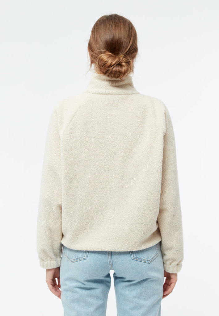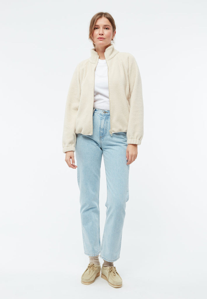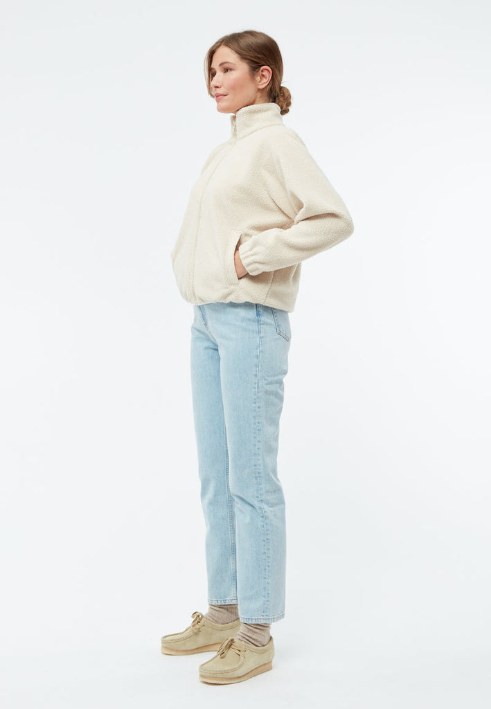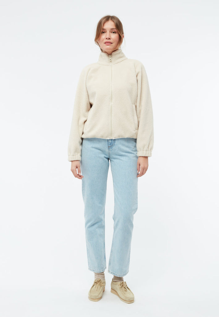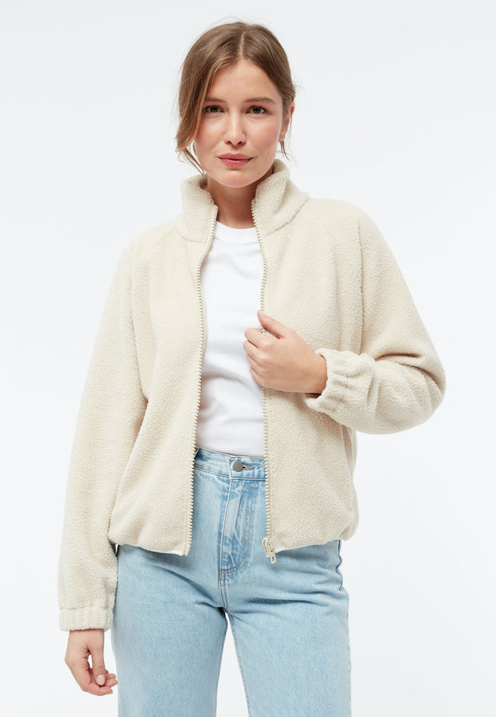 Conny is a cozy teddy fleece jacket made from recycled polyester from France. The matching zip, stand-up collar and loose fit create a contemporary and relaxed look for cooler days.