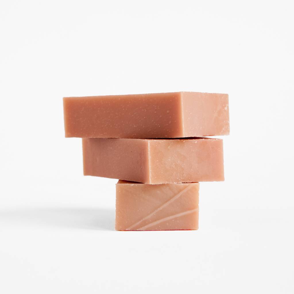 Ingrediënten: verzeepte oliën van kokos*, zonnebloem*, olijf*, cacaoboter* en karitéboter*; water; etherische oliën van roosgeranium*, palmarosa* en damascusroos*; meekrapwortelextract.