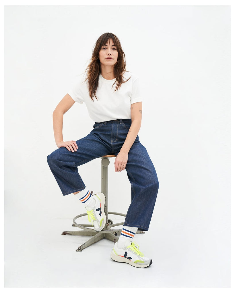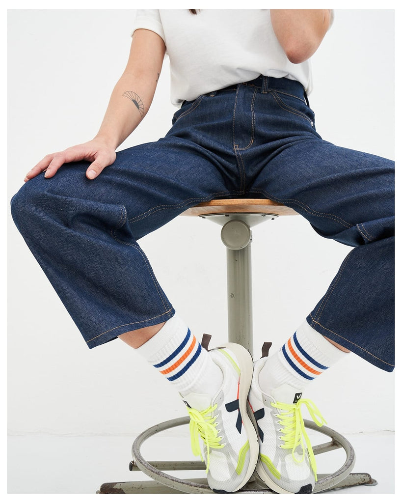 De Bobbie Barrel is onze wide leg jeans met een hoge taille en wijde pijpen die net boven de enkel zijn afgesneden. De dames spijkerbroek heeft een cutting edge look en is gemaakt van biologisch katoen en hennep. Deze barrel jeans is gemaakt van dry denim, waardoor het de ultieme tijdloze jeans is voor echte denim liefhebbers. Dry denim is denim in zijn puurste en meest duurzame vorm. Deze dry jeans is niet gewassen tijdens het productieproces. De manier waarop je het draagt, bepaalt hoe jouw wide leg jeans eruit komt te zien. Zo creëer je in de loop van de tijd jouw unieke spijkerbroek.