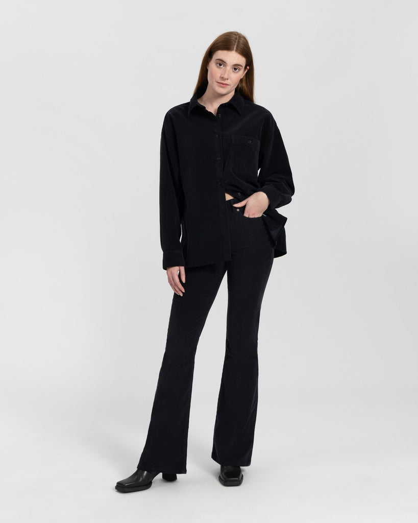 Een flare broek gaat hand-in-hand met de iconische ribcord stof. Het kan dus ook niet anders dan dat onze geliefde Lisette nu verkrijgbaar is als corduroy. Lisette is onze op de jaren 70 geïnspireerde flared boek, gebaseerd op een van onze all-time favoriete spijkerbroeken: de Amy bootcut jeans. We hebben de taille van de Lisette iets hoger gemaakt en de flare een beetje breder.