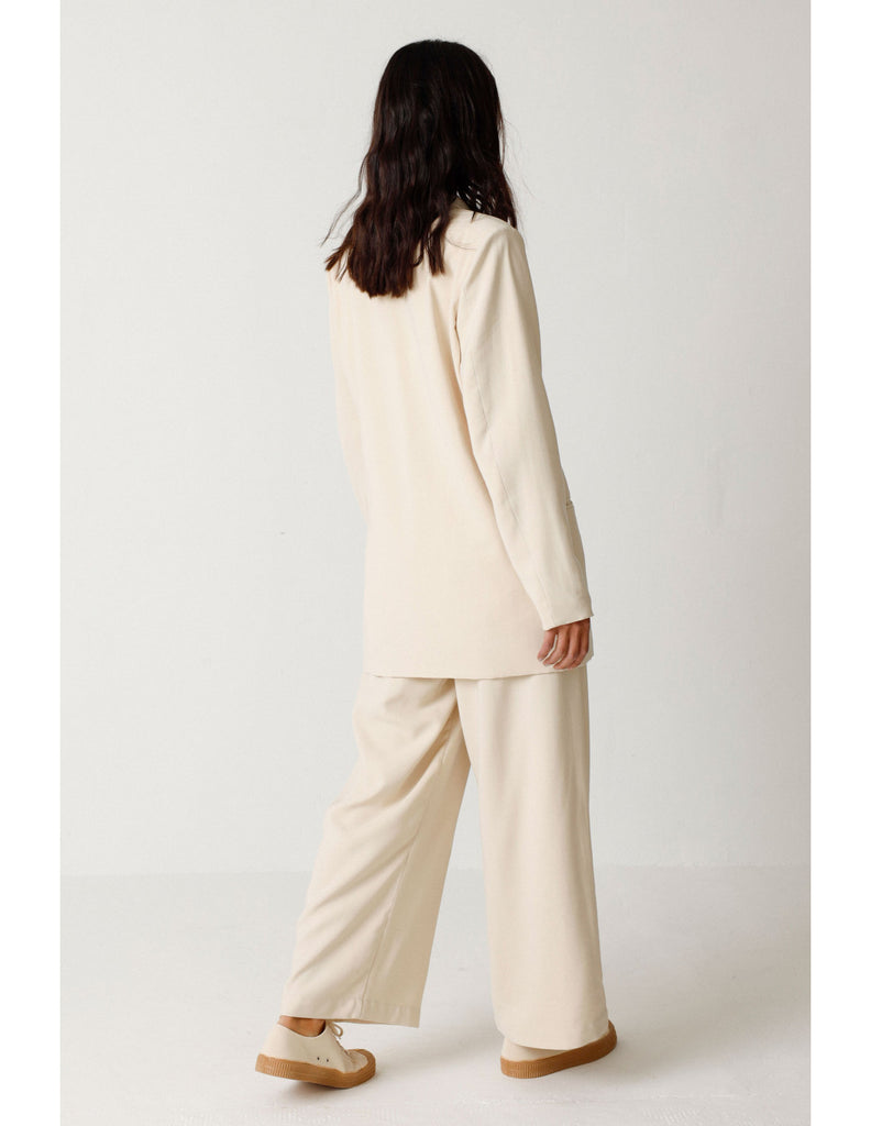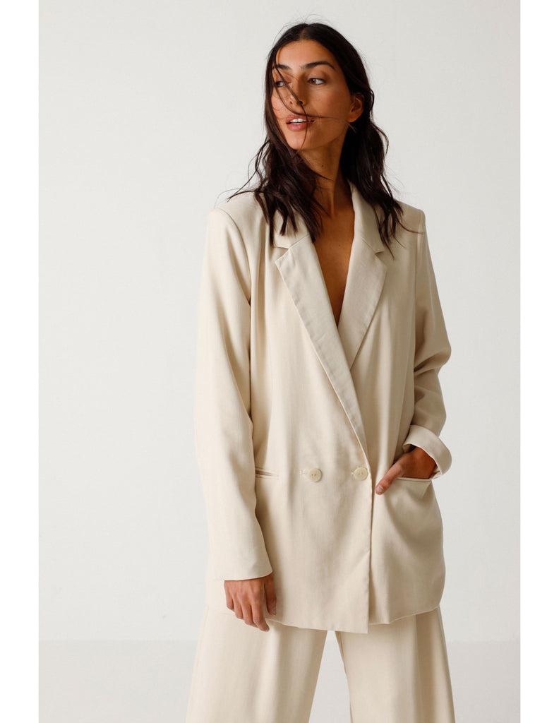 Long blazer jacket with an elegant lapel collar, long sleeves and a front buttoned fastening. This style is fully lined with a silky fabric.