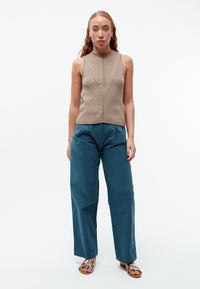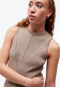 Courtney is een prachtige gebreide top gemaakt van biologisch katoen. Het verfijnde breipatroon maakt het tot een absolute blikvanger. Op frissere dagen kun je hem stoer stylen over een blouse of shirt met lange mouwen.