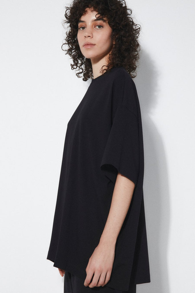 Oversized maxi T-shirt in soft cotton jersey with markedly dropped shoulders and a ribbed collar.